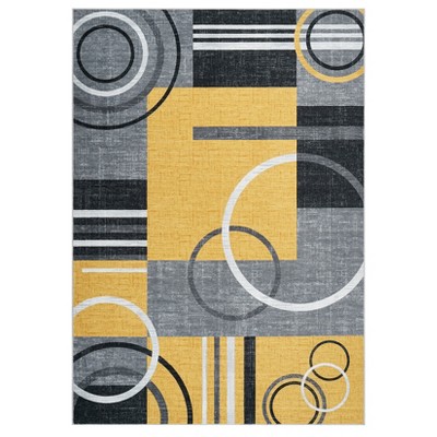 Washable Rugs for Living Room Modern Geometric Area Rug Circles Pattern Rug Stain Resistant Low Pile Accent Rug, 5'x7'