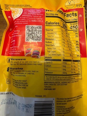 Tasty Bite Organic Jasmine Rice - Case of 12/8.8 oz