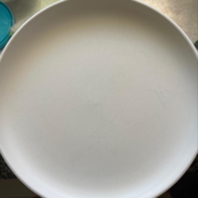 bought these plates in beige and am very disappointed in the quliaty. after just one use there were significant scratches on the plate. now they just look dirty.