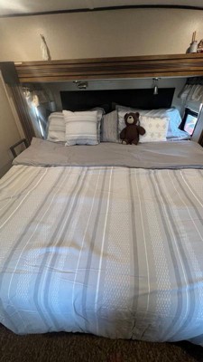 [This review was collected as part of a promotion.] I’ve never tried this brand of bedding before, so I was excited to test it out! It’s a seven piece set, which includes a bed skirt, 3 decorative pillows, two pillow cases, and a comforter. Upon first impressions, I loved the simple yet fun design. The fabric feels lightweight but seems like it’s good quality. I will only use machine washable fabrics, so this set being washable is a huge plus! I do wish it came with a fitted sheet. Overall, I recommend it!