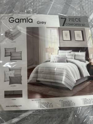 Experience the epitome of comfort and style with our 7-Piece Comforter Set, boasting a chic blend of gray and white stripes. Crafted from premium quality jacquard, this set offers durability and luxury. Suitable for all seasons, its warm, breathable fabric ensures optimal comfort whether it's a scorching summer or chilly winter night. Lightweight and skin-friendly to the touch, this set promises a wonderful sleeping experience. Plus, it's machine washable for easy maintenance, offering convenience alongside its elegance and coziness, making it the perfect addition to your bedroom.