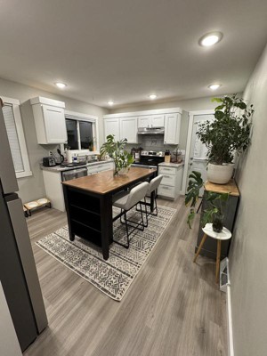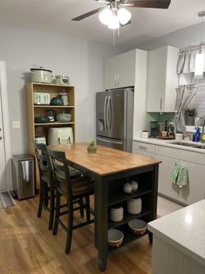 Absolutely love it!! Love the navy! Perfect multi purpose kitchen island with the room for 4 stools and shelves for decor!