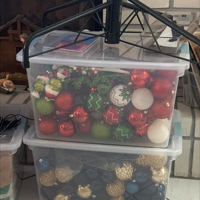A: Hi Xmasstorage! The 66 Qt. Storage Bin lends itself to store an array of of household items, including decor. We hope this information helps!