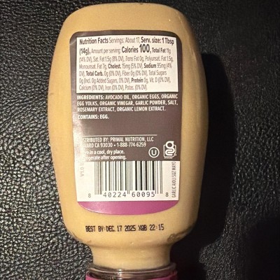I love the garlic aioli sauce at Subway and was so pleased to see when Primal added this to their products. I love it with chicken fingers/cutlets and on a sandwich with chicken or turkey meat.