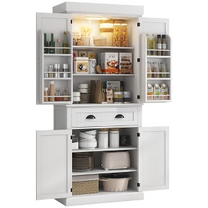 HOMCOM 71" LED Kitchen Pantry Cabinet, Tall Storage Cabinet with 6 Door Shelves, a Drawer and 4 Adjustable Shelves, White