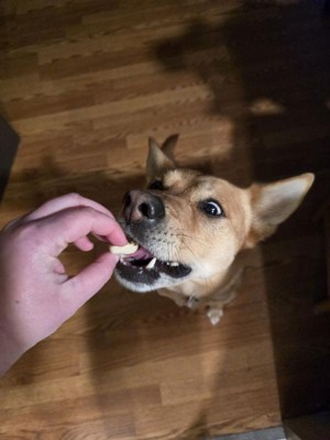 [This review was collected as part of a promotion.] My dog LOVES these chicken bites. I even tried one myself and if I was in a pinch I would eat them too. LOL. They were all natural and tasty without a gross dog food smell.