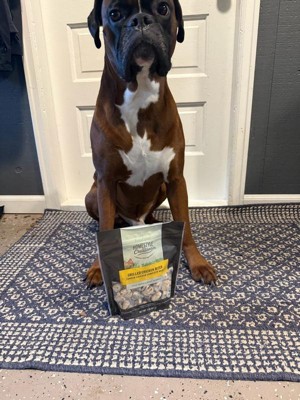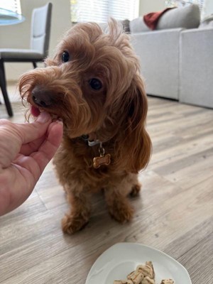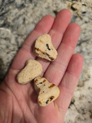 [This review was collected as part of a promotion.] I got these for my dog to try out and he absolutely loved them! They smell and feel like fresh grilled chicken, like the nuggies you get from Chick fil A. They break apart easily but don’t crumble. I am happy to feed my dog something and feel good about the ingredients and what he’s eating. Will definitely repurchase!