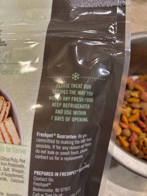 [This review was collected as part of a promotion.] My dog LOVED these chicken bites. He is very picky with food and he ate them without hesitation. They come in a ziplock style bag making it easy to open and close. They stay refrigerated. You get a decent amount of food in the bag, depending on the size of your dog and how much they eat, for my dog it was a great amount. We like freshpet and have tried a lot of their food, looks like we will add this to the rotation!