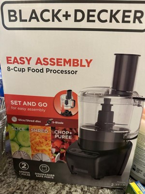 BLACK+DECKER Food Processor and Vegetable Chopper, Stainless Steel Blade, 8-Cup Capacity, 450W Power w/ Attachments to Shred, Slice, Grind, and Puree