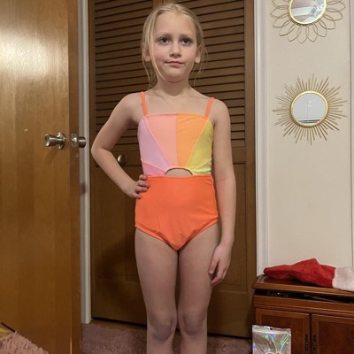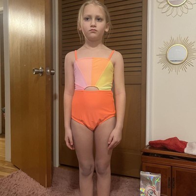 They'll be ready to enjoy sunny days at the beach or pool while wearing the Colorblock One-Piece Swimsuit from Cat & Jack™. This sleeveless swimsuit showcases a colorblock pattern with keyhole detailing at the front for a beautiful look. The UPF 50+ rated design helps keep them shielded from harmful UV rays, while the pull-on style allows easy wear and removal. Providing full coverage, this printed swimsuit is tailored from a recycled polyester-spandex blend with full lining for flexibility and comfort all through their waterside activities.