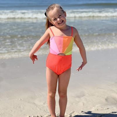 [This review was collected as part of a promotion.] This swimsuit is full of fun break colors and is a super cute style. I love that. It looks like a son and has the half circle cut out in the middle. My daughter who is having is wearing a size six seven Which is our normal size in a swimsuit fits great with room to grow. She’ll definitely be able to wear it next year since it’s such great quality. We would definitely recommend for anyone that’s looking. I received an incentive to write this review.