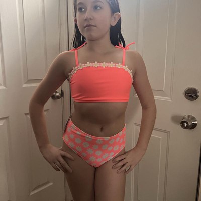[This review was collected as part of a promotion.] Best floral printed bikini set is adorable. We absolutely love art class brand. They always have the cutest items but we especially love this vibrant neon pinky coral color. It definitely will be awesome with a tan in the summer. My daughter typically wears a size 10 to 12 but I have noticed bathing suits in that size tend to be a little tight on her rear so we went ahead and sized up which I’m so glad you did with the size 14 fits her perfect perfectly. I would maybe be size up if you’re in between sizes I received an incentive to write this review.