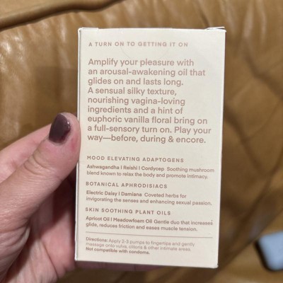 [This review was collected as part of a promotion.] This product did absolutely nothing in terms of enhancing any thing. It would make a really good lube but I’m not way would I call it a pleasure enhancing oil. If your looking for a plant base clean vegan lube this would be a great product for you. It’s very greasy feeling. Very messy. It comes with 39mL which is a very generous amount. I did not find this product to be useful. I received an incentive to write this review.