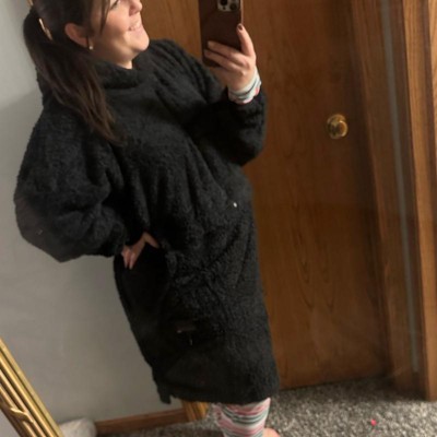 This oversized fleece blanket hoodie is amazing! It's super soft, warm, and has a nice, thick feel without being too heavy. The oversized fit makes it perfect for lounging or working from home—| can stay cozy all day without needing an extra blanket. I love that the sleeves are cuffed at the ends so they don't get in the way while typing or doing things around the house. The big front pocket is perfect for keeping your hands warm or holding your phone. Great quality and such a comfy, practical piece—| highly recommend it!