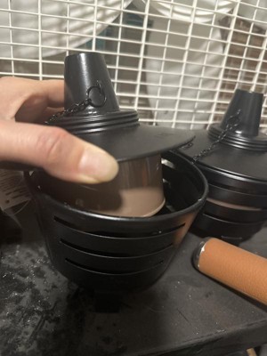 [This review was collected as part of a promotion.] These have to be the cutest of all my tiki products! This pair look like miniature fire pits and they are just adorable. I like that they come in a pair for each Rand table on the patio. They hold a good amount of oil so it can burn all evening. They are easy to refill and have a cup attached to put out the flame easily! I highly recommend this product for your fall patio gatherings!