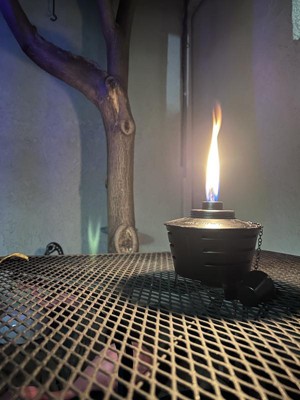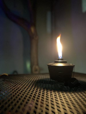 [This review was collected as part of a promotion.] These are super cute and look like the patio fire pit. They do have a few drawbacks, the lid and the legs. The legs are very thin, they’re sturdy I’m not worried about them breaking or bending but, they were getting caught on my metal mesh patio table if I tried to slide it to move it. The lid is much larger than the fuel canister opening and it was awkward to screw back on once it was full. The lid also doesn’t sit on the base very well, if you bump it at all it shifts. There’s no threat of it actually falling over since the canister inside is pretty wide but it’s still annoying. They put out a nice amount of light for being a small wick and are very visually appealing. If you’re going to be using them on a solid surface out of reach then I think they’re a good choice.