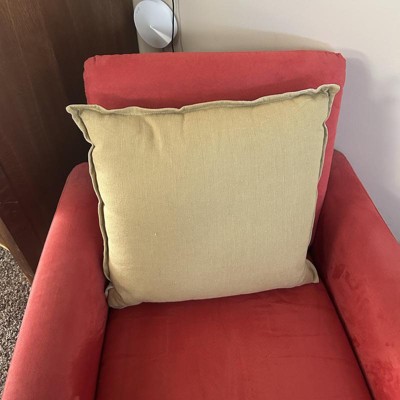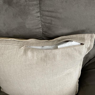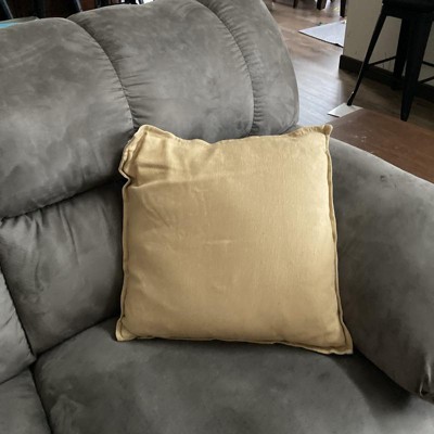 Add a touch of sophistication to your decor with this Square Linen Reversible Throw Pillow with Flange from Threshold™. This 18-inch square pillow showcases a reversible design with a gold-color front and beige back, highlighted by a coordinating flange. Featuring a soft linen-cotton blend exterior and a well-filled interior, the decorative throw pillow adds the right amount of comfort and style to your sofa, couch, bench or bed.