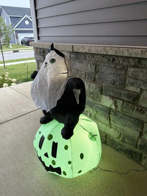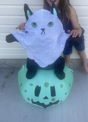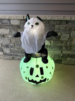 - 3.5ft inflatable ghost cat on jack-o'-lantern outdoor decoration