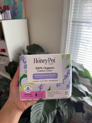 The Honey Pot Company 100% Organic Cotton Cover Calming Herbal Infusion Regular Pads - 20ct