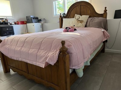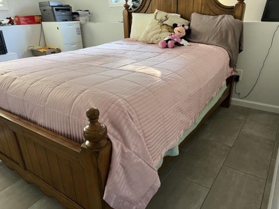 This bed blanket does the job, providing warmth with a lightweight feel. This blanket would be a great addition to bedding when a little extra warmth is needed without bulk. The satin edging is a nice touch and my kids love the feel of that detail. For my personal preference, I don’t love that the entire blanket has a shine to it as it seems a bit old fashioned. But it does the job and the quilting holds in warmth well.