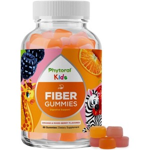 Kids Fiber Gummies, Vitamins for Kids Constipation Relief, Immune Support & Digestive Support, Orange & Mixed Berry Flavors, Phytoral, 60ct