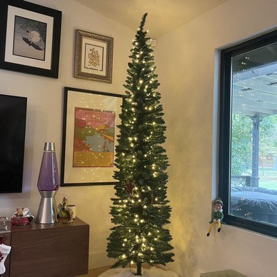 Super happy with this purchase 💚❤️ it's hard to find an 8ft tree since most are 7.5ft or 9ft, but I have a sloped ceiling in my living room and wanted something that would perfectly fit. So thrilled I found this one! I also found the pre lit lights to be integrated in a quality way, which I've had issues with in other trees at this price point