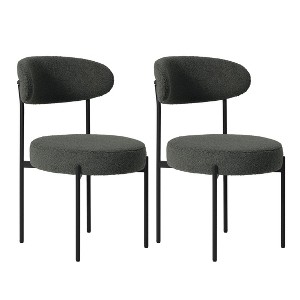 Turn your dining area into a place to be with our charming Mid-Century Modern Upholstered Faux Shearling Round Dining Chairs (Set of 2). these modern dining side chairs are the perfect addition for style and comfort, from their teddy-like Faux Shearling fabric that gives a boucle dining chair look to the soft foam-filled seat cushion for comfort. with a wide range of colors to choose from black and white dining chairs with more colors to choose for your dining room. charming and comfortable with the soft foam filled seat cushion that adds comfort all day.