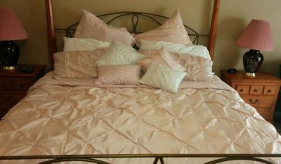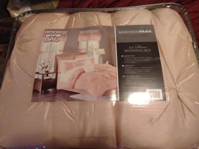 [This review was collected as part of a promotion.] This is such a beautiful bedroom set. It makes my bedroom look gorgeous! I just love the colors of this pink and white together. It reminds me of when I was a little girl feeling like a princess! The pink is a beautiful kind of shiny material. The sheets are soft and feels so nice on my skin. I felt so cozy while I slept. The different size pillow shams and decorative pillows add beautiful layers to my bed when I put it all together. I was so excited about all of them that I kept moving them around and trying them in different places. There are two valances and four curtain panels that they can be placed on two small or medium size windows or one large window. The sheer curtains let in the perfect amount of light when not tied back so that I could take a nap without it being too bright. This is the nicest bedroom set I have had in a long time.