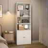 - Versatile: This white bookcase with doors can be used as a file cabinet in the office, a bookshelf in the study room, an open display rack of collections in your living room, a storage shelf of spices in the kitchen or a book corner in the school library and classroom, it also fits perfectly into the bedroom, bathroom, balcony and so on.
