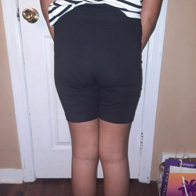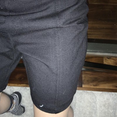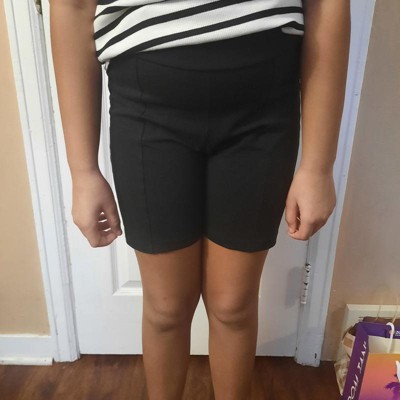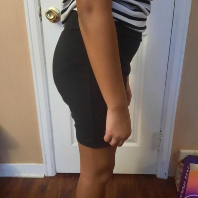 [This review was collected as part of a promotion.] These art class long biker shorts are very cute. They have a large waistband and a very stylish boning down the front. These run a big large as featured is a 43ish inch girl at just under 40 pounds and clearly we have a lot of extra room in them. The shorts come at a great value and are a very bold dark black short. There are no pockets on these shorts so if that’s what you have to have on your shorts, these would not be for you. I received an incentive to write this review.
