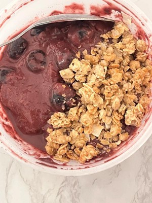 [This review was collected as part of a promotion.] I love Acai bowls! The strawberries and blueberries that were cut and on the top of the bowl tasted really good as they were really fresh when frozen. The packet of granola to sprinkle on top was a nice way to add more texture to the bowl. I mixed it up into the bowl. I would buy this again!