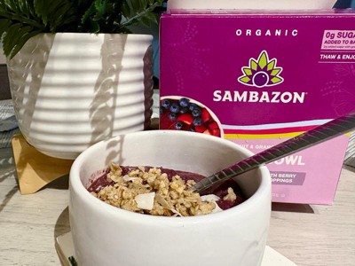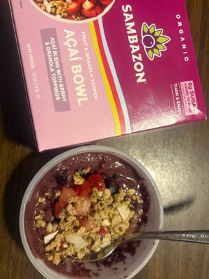 [This review was collected as part of a promotion.] This lives up to the name after a taste it gave me the " aww sigh yee" vibes Sambazon Acai Bowl - Superfood Strength: Packed with antioxidants, fiber, and heart-healthy omegas from wild-harvested açaí berries. - Clean & Conscious: USDA Organic, Non-GMO, Vegan, and Fair Trade—because doing good should taste great. - Ready When You Are: Whether you grab a Ready-to-Serve bowl or customize your own with our Ready-to-Top options, it’s convenience without compromise. - Flavor That Hits Different: From Berry Bliss™ to Mango Passion Fruit, each bowl is a tropical escape with a creamy texture and rich, chocolatey-blueberry flavor