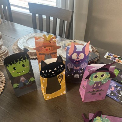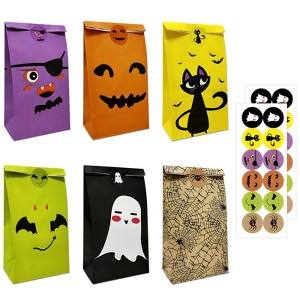 - INCLUDES: Set comes with 24 Halloween treat bags and stickers total. 6 designs x 4 bags and stickers per design.