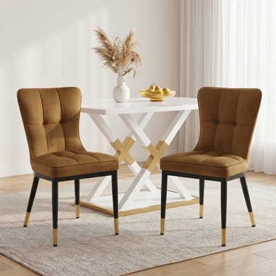 VECELO Dining Chairs Set of 2 Upholstered Parsons Dining Chairs with High Back and Wooden Legs, Coffee