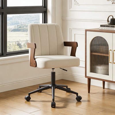 Merrick Lane Mid-Back Height-Adjustable Stationary Armless Swivel Office Chair - Cream Padded Faux Shearling Wide Back and Seat, Strong Black Frame