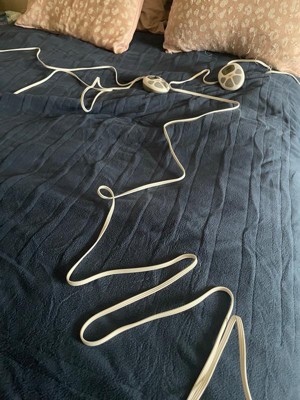 I really like this blanket. It is soft and warm even without turning it on. It is a nice weight. I use it to warm the bed before I get it in bed, and sometimes when it is cold enough that I need a little extra warmth. I have found that setting 2 is sufficient for warming the bed and 1 is good for a little extra warmth. I do wish the powercord to controllers were longer. I used a power strip at the head of the bed to power the controllers.