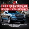 - Upgrade your truck's appearance with the Raptor-Style Mesh Grille with DRL and turn signal lights for a new, aggressive look