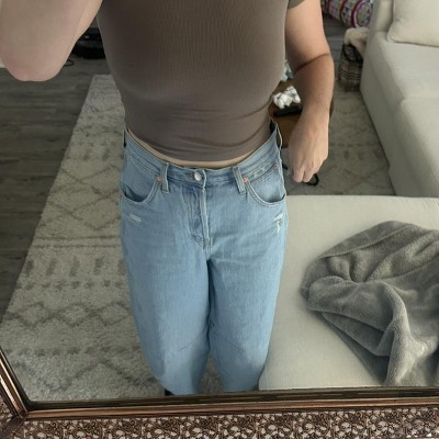 This was a surprise. I didn't even look twice at those barrel jeans when they first came out, thinking the overly big legs would look ridiculous on me. Saw it on the sale rack one day and thought to try it on just to see... Turned out it was so flattering! Good thick but soft denim that drapes nicely. The high waist is very flattering with the two darts on the back. It is fitted around the waist and hips. The legs are big but drape nicely and do not stick out like sails. I hate buttoned jeans in general. However, Target buttoned jeans are cleverly done, the flaps are not overly thick, they are thin, soft, easy to button/unbutton, lay flat and do not add bulk to your tummy. I bought the light wash and white colors. The unfinished hems add a fun vibe but I wished the light blue came without the distresses. I added a straight then a zigzag stitched lines at the hems to prevent them from unraveling and going tattered after wash. Too bad the dark wash was out of stock. They do run large. I am 5'6", 118 lbs, 30" waist, 38" hips, regular size 28/6 in bottoms and sized down to a 4 in both light blue and white.