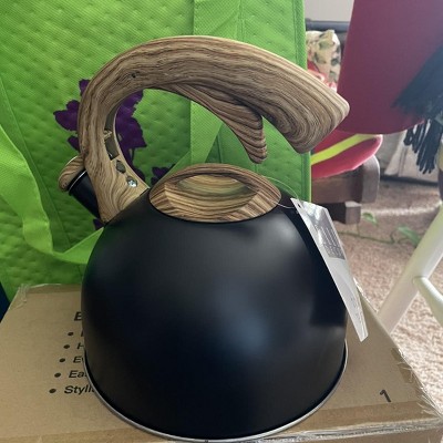 Elle Decor 3-Quart Black Whistling Tea Kettle with Heat Resistant Handle, Tapered Marble Finish Stovetop & Gas Tea Kettles