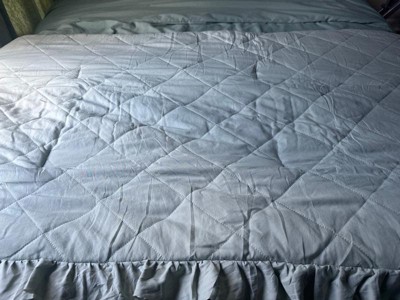 [This review was collected as part of a promotion.] So warm and comfortable! This set was perfect for our guest bed. Very good quality and i love the ruffles around the edges. Even though it’s quilted the stitching isn’t scratchy like some blankets.