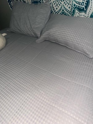 Modernize your bedroom with our elegantly chic bedding set, showcasing a quilted pattern in an upgraded waffle-like woven texture. This unique take on a classic design combines lightweight fabric with exceptional breathability and comfort, providing a delightfully soft and fluffy feeling all year round.