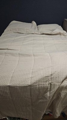 [This review was collected as part of a promotion.] This is a nice bedding set that fits my queen bed. It comes with the quilt and 2 shams. I like that it is a neutral color and that it has a woven texture design to it. The shams have a little thickness to them, so they don’t look thin and flimsy. A comforter can be a bit too thick for me at night, so this quilt is great at keeping me comfortable.