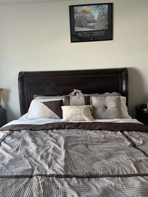 [This review was collected as part of a promotion.] The design has is perfect for more of a neutral tone or masculine feel for a bedroom. The durability and fit are perfect for the Queen size bed. The quality of the comforter is perfect for something long lasting. This comforter set is definitely cozy and love it.