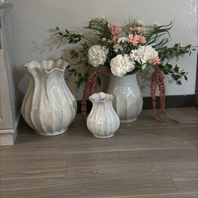 9" Pleated Ceramic Vase Sour Cream - Hearth & Hand™ with Magnolia