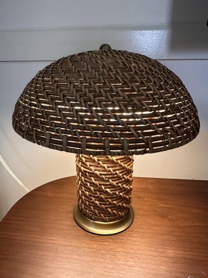 Add a beautiful accent to your home and illuminate the space in a vintage style with the Rattan Accent Table Lamp (Includes LED Light Bulb) from Hearth & Hand™ with Magnolia. This accent table features a mushroom-like shape with a round metal base for a standout look you'll love. Made of rattan, this brown table lamp has a woven design for an artistic appeal. The three-way light setting allows you to customize the lighting according to your needs. Simply turn it on and off with the touch-activated sensor.
