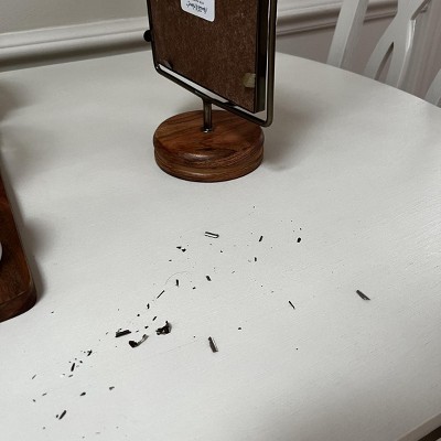 Horrible and disappointing quality! It looks nice online and my first impression unpacking it was good. Unfortunately, a second look revealed the the frame was crooked in the stand and the metal tabs on the back that hold the picture/glass in place are attached and almost impossible to pull back. When you are finally able to get access to the back, gold flakes from the back of the tabs are everywhere. Gold flakes all over your carpet, furniture, hands, clothes, and precious photos. Took me forever to get it all washed off. I had to vacuum twice to get it out of the carpet. This is either going in the trash or back to the store.
