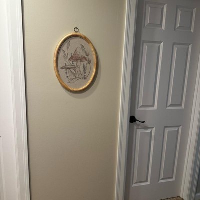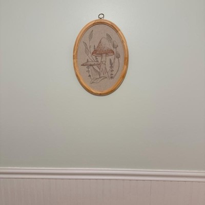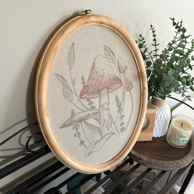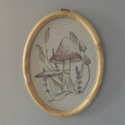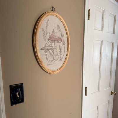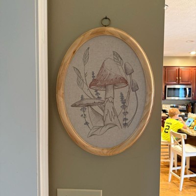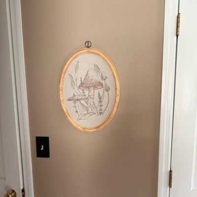 I recently purchased this 17”x13” embroidered mushroom artwork by Magnolia, and I just love how it blends into my space. The size is perfect for a small wall or just a fill in piece. The neutral colors are beautiful and mix well with any decor. The wooden frame feels very sturdy, and I am obsessed with the oval shape.