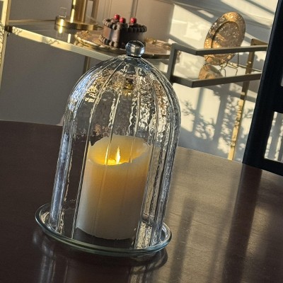 Nice heavy cloche. I love the design in the glass and the sparkle it has when the candle is lit.