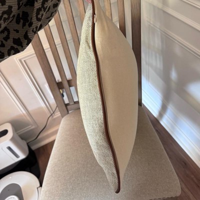 I ordered this pillow for our couch. I think that this pillow gives such an elevated and practical look. Can’t go wrong with the color.. the description reads light green but it looks more brown/cream. I absolutely love the leather trim too. It’s very unique and different but in the best way. This goes perfectly with our dark grey couch. Perfect layering piece with other pillows.