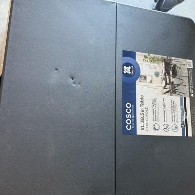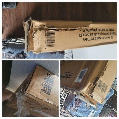 This table was damaged upon delivery. I was excited about the sturdiness, size and ability to fold in half but will need to return.
